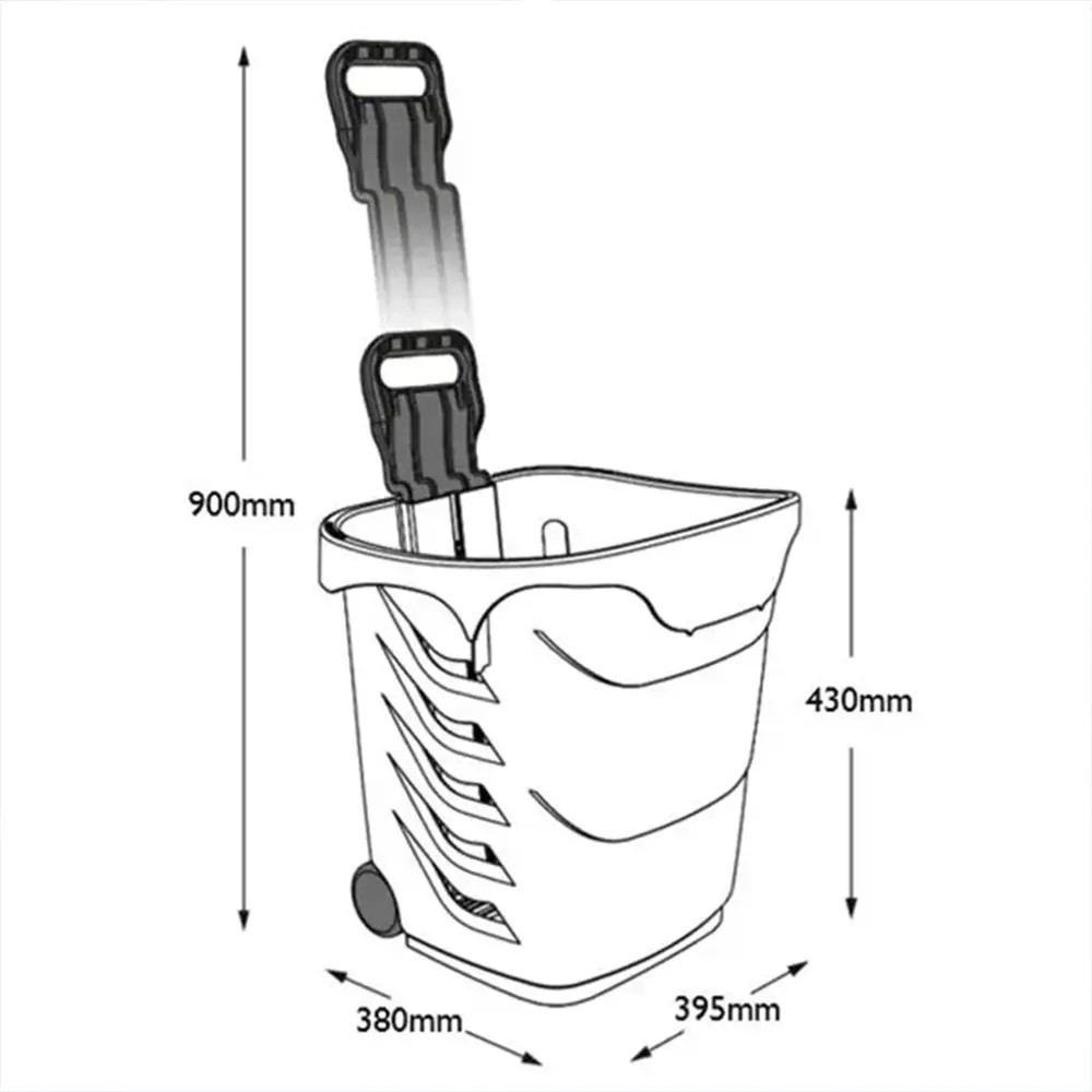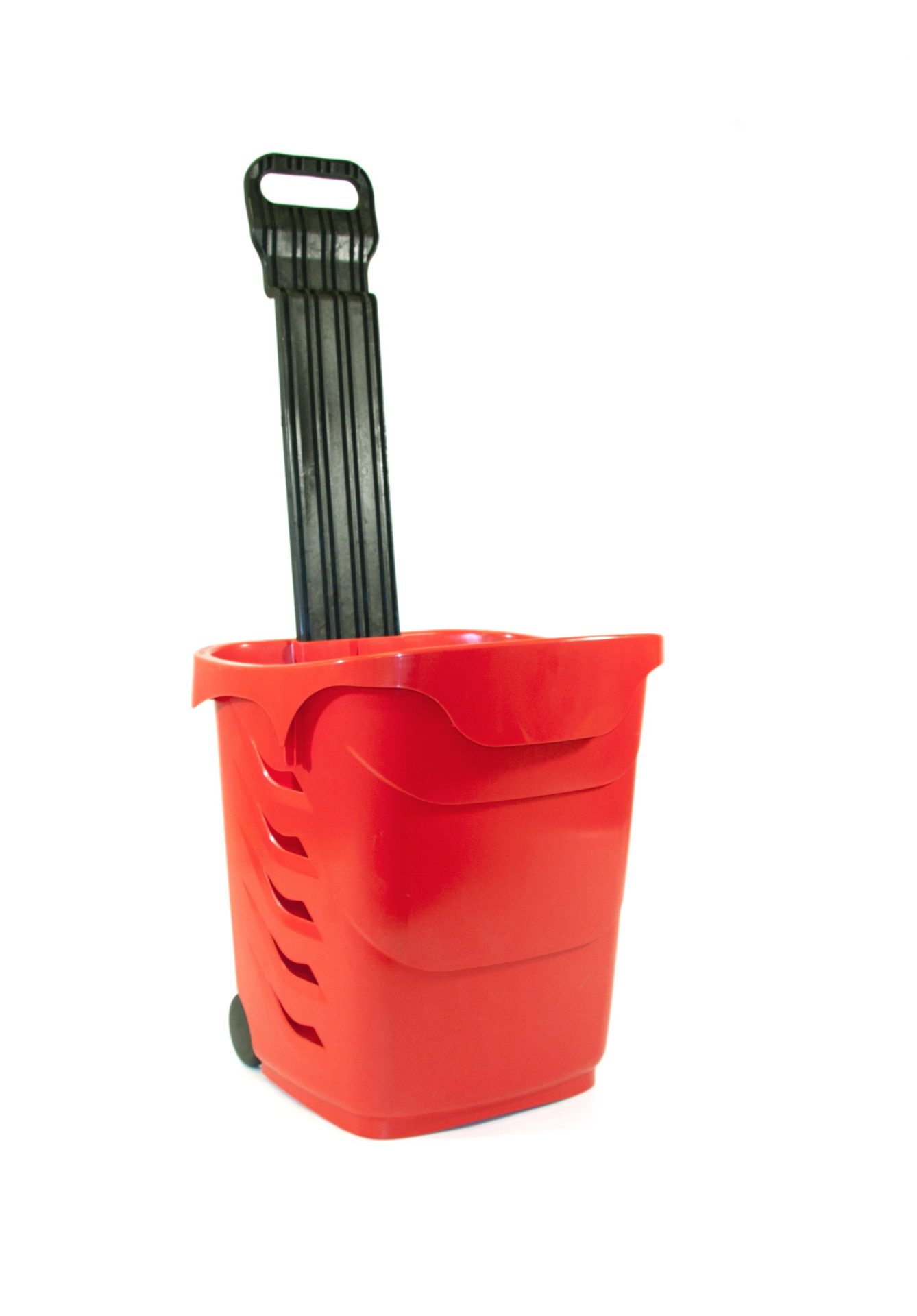 A new addition to our range, this sturdy basket has a huge 38 litre capacity. At 900mm tall, and with a large flat base it provides some stability for older shoppers, and can be pushed or pulled along. As customers do not have the fatigue of carrying a basket, they can shop for longer and spend more. They have two fixed wheels. Base size externally is 395 x 380mm.