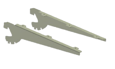 Sold in left and right hand pairs. Wooden shelves can be screwed to the bracket from underneath. For glass shelves, you will also need to order the appropriate length tie bar, and glass shelf suckersĀ (packs of 100 – 4 suckers per shelf). Wooden shelves can also be mounted in this way. Unfortunately tie bars are only available in Jura White, so you will need an aerosol of Silver Grey spray paint as well.![]()